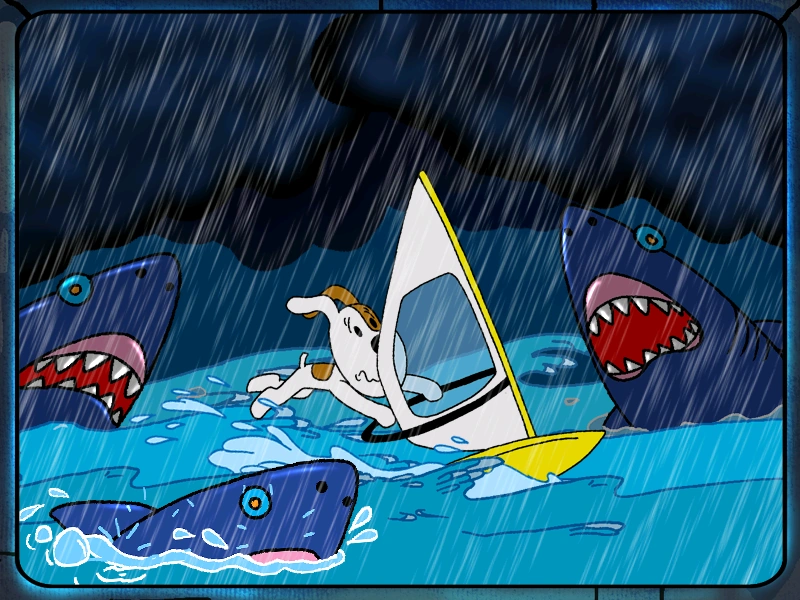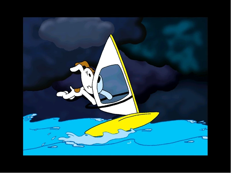 Reksio surfuje w czasie burzy