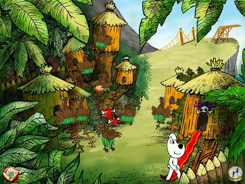 Warto przerysować mapę. Dzielny pies bierze pochodnię i zaczyna przedzierać się przez labirynt korytarzy. Na jego ścianach zauważa rysunki które pomajają mu przejść przez rzekę lawy. Po przeskoczeniu drugiej planszy zauważa rozbity w głębi wulkanu Statek kosmiczny.